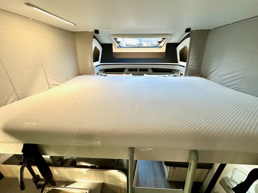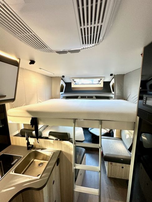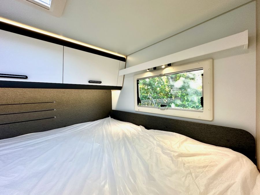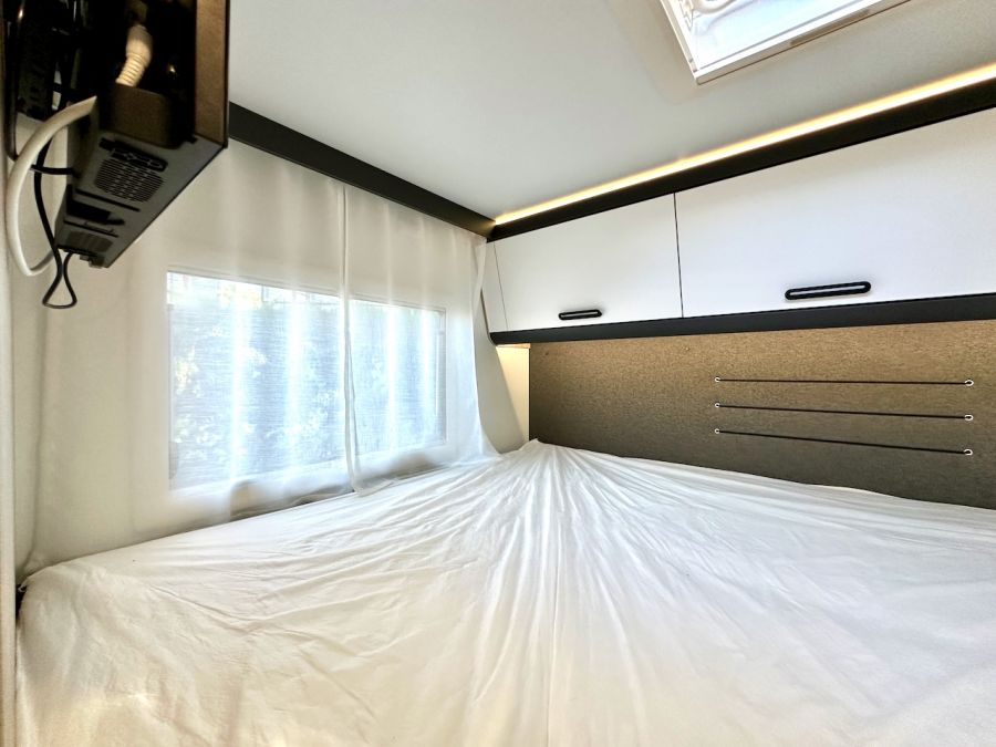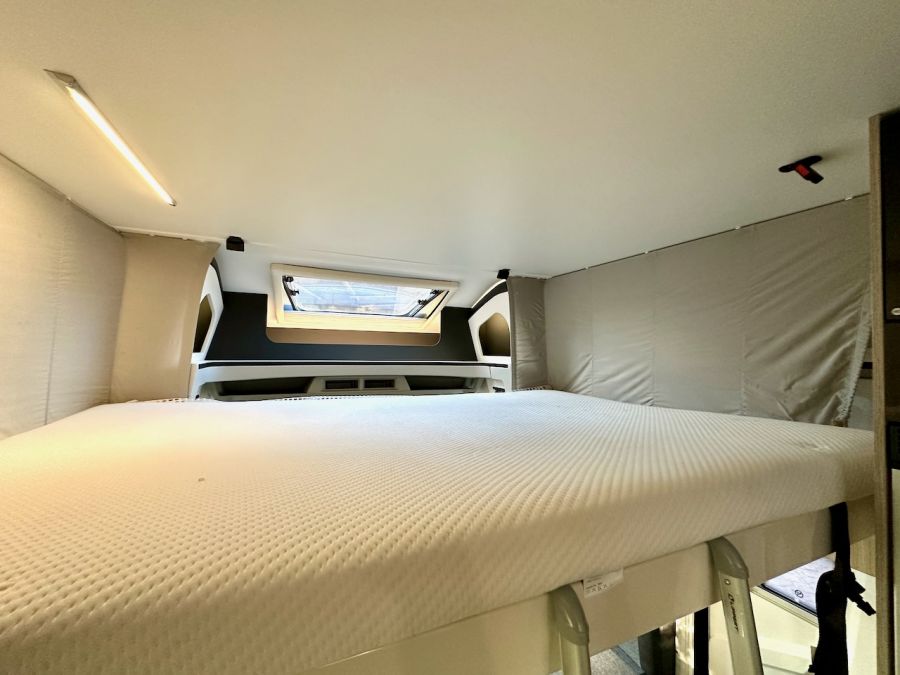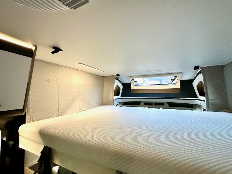 Cama transversal de 210 x 140 cm en la parte trasera.
