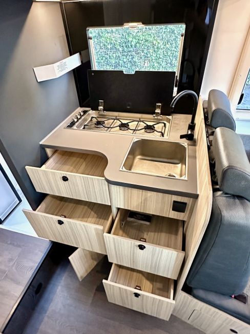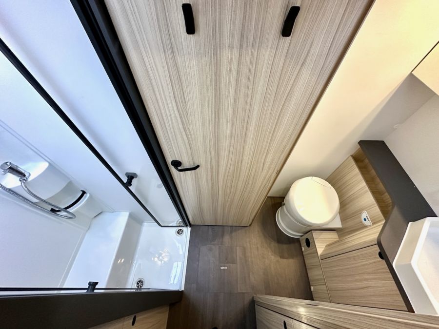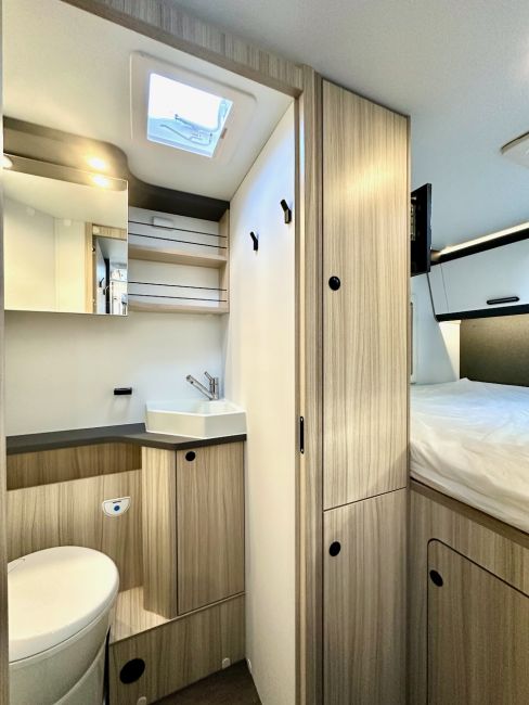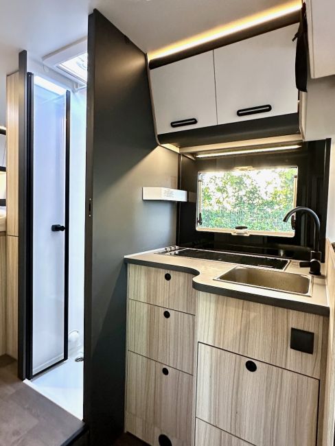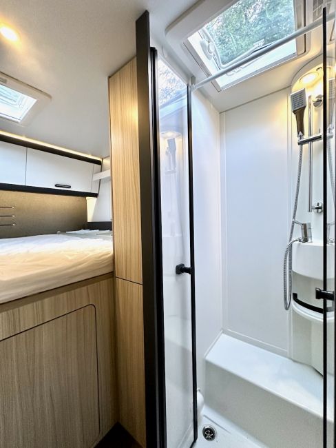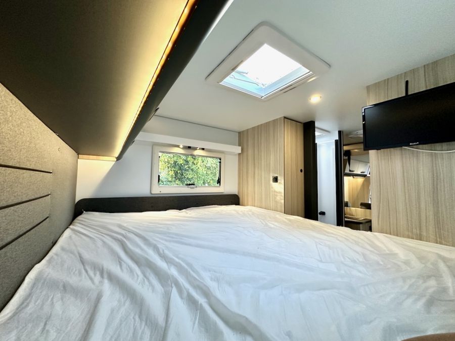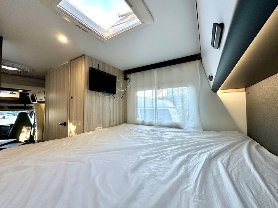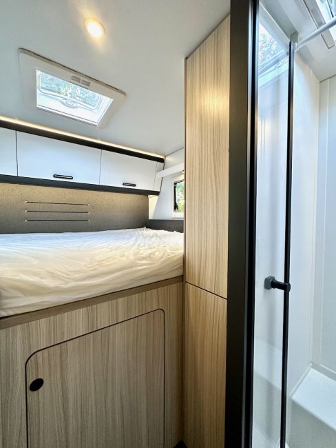 Cama transversal de 210 x 140 cm en la parte trasera.